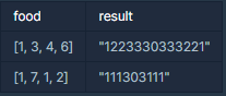 수웅이가 준비한 음식의 양을 칼로리가 적은 순서대로 나타내는 정수 배열 food가 주어졌을 때, 대회를 위한 음식의 배치를 나타내는 문자열을 return 하는 solution 함수를 완성해주세요.