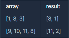 정수 배열 array가 매개변수로 주어질 때, 가장 큰 수와 그 수의 인덱스를 담은 배열을 return 하도록 solution 함수를 완성해보세요.