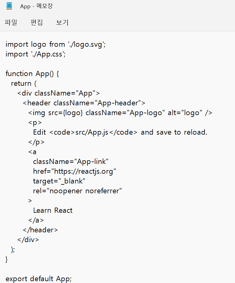 index.html 우클릭 - 연결프로그램 - 메모장 하면 아래 코드 확인 가능