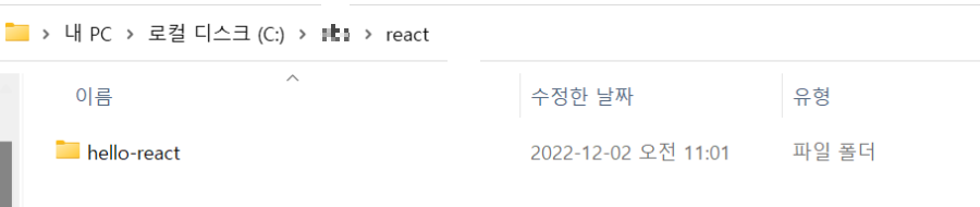 hello-react 생성 폴더는 여기서 확인 가능하다.