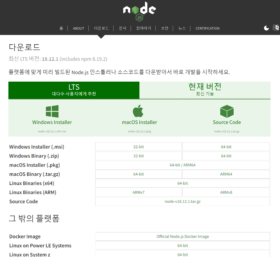 1. 홈페이지 들어가서 Windosw Installer 선택(각자 OS에 맞게 선택)